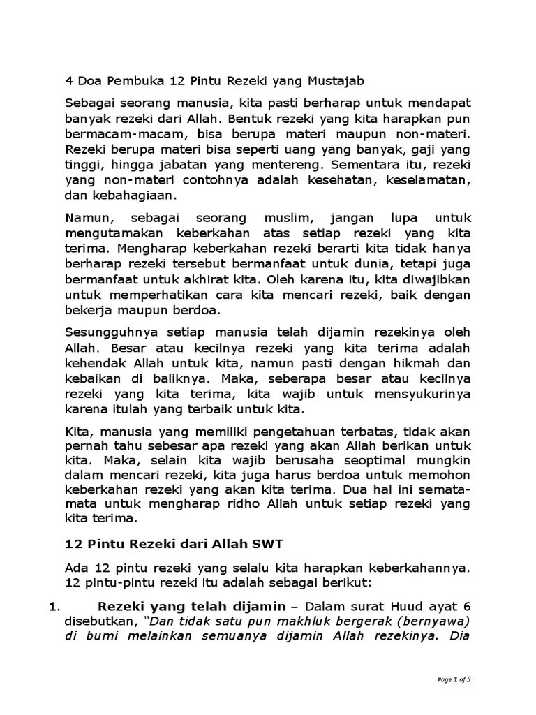 Doa Buka 12 Pintu Rezeki / Doa Pembuka Pintu Rezeki Ilmu Dan Amal Amalkan Setiap Pagi Blog Sihatimerahjambu. Doa dan amalan pembuka 12 pintu rezeki tersebut termasuk amalan yang ringan namun memiliki fadilah yang sangat menakjubkan. Watch popular content from the following creators: . Anda juga bisa memohon kepada allah swt untuk kemudahan dan kelancaran rezeki di dunia.